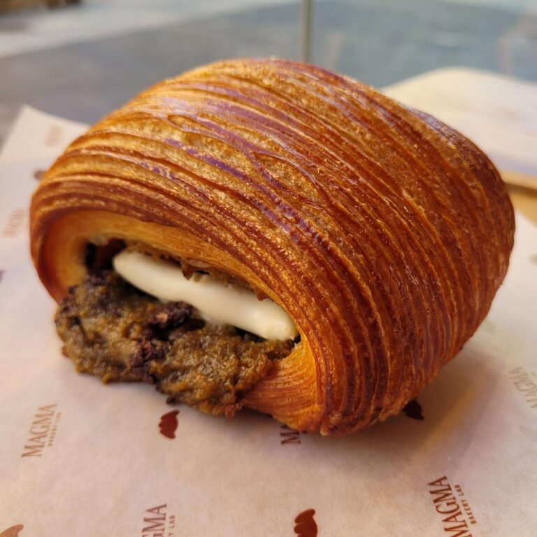 El nombre «Magma» no es casualidad. Se inspira en la apariencia única de las capas de masa de un croissant, que recuerdan las capas de lava solidificada. Este detalle simboliza el proceso artesanal y la precisión con la que se elaboran todos los productos de Magma Bakery Lab. Cada pieza es una obra maestra que combina texturas, sabores y técnicas innovadoras.