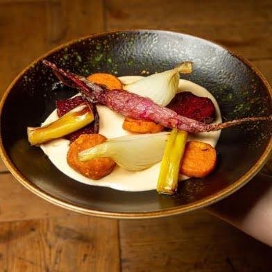 Platos innovadores en un bistró plantbased, que trabaja sobre todo con ingredientes sostenibles y pequeñas bodegas.