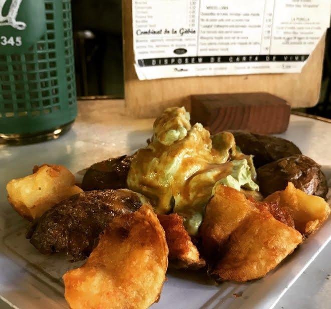 Sigue nuestra búsqueda de bravas veganas esta vez por recomendación de @fruty_free fuimos a #vermutialagabia una bodega con encanto donde nos pusieron las bravas que veis en la foto .Crujientes patatas de variedad agria con una veganesa de leche de soja verdosa por su esencia de perejil, acompañada de un aceite especiado ️ En la carta alguna opción más vegetariana y un hummus para veganos. Sitio ideal para hacer un vermut y bravas en la concurrida plaça d’Osca Si conoces más sitios para comer unas buenas bravas veganas puedes comentarlo aquí